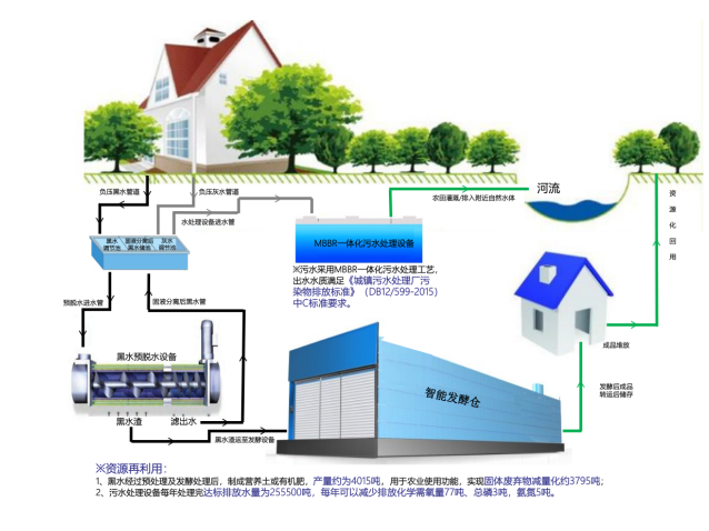新建入戶收集污水系統、收集中心、處理中心和堆肥廠。